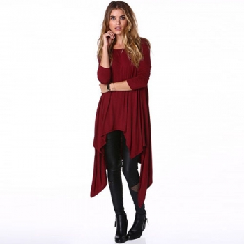 Fashion Solid Color Long Sleeve Round Neck Irregular Hem Dress
