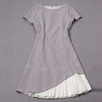 OL Style Short Sleeve Round Neck Pleated Hem Dress