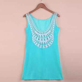 Sexy Backless Lace Spliced Sleeveless Chiffon Dress