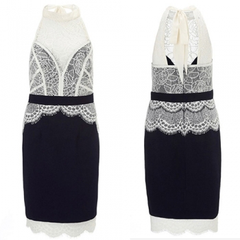 Sexy Backless Lace Spliced Sleeveless Slim Fit Party Dress