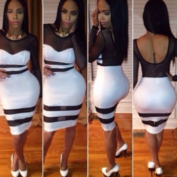 Sexy Backless See-through Gauze Spliced Slim Fit Dress