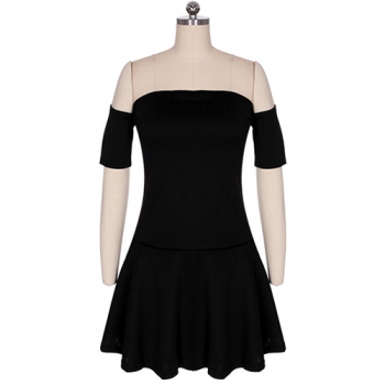 Sexy Slash Neck Off-shoulder Short Sleeve Solid Color Dress