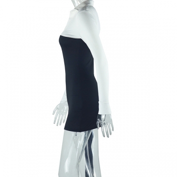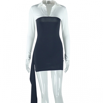Sexy Spliced 3/4 Sleeve Deep V-Neck Contrast Color Sheath Dress