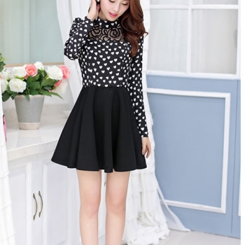 Sweet Hearts Print Long Sleeve Gathered Waist Dress