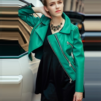 Fashion Solid Color Long Sleeve Lapel PU Leather Jacket