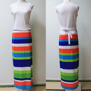 Fashion White Tops + Colorful Striped Skirt Two-piece Set