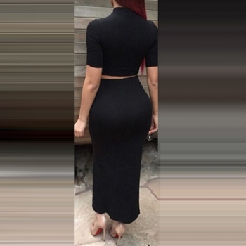 Sexy High Collar Crop Tops + High Waist Bust Skirt Set