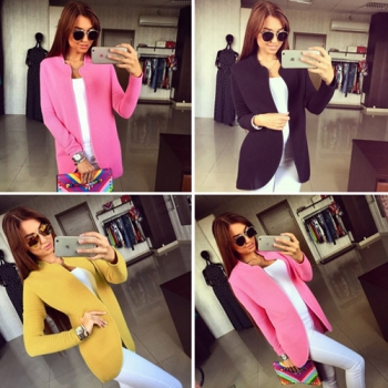 Fashion Solid Color Long Sleeve Stand Collar Knitted Cardigan
