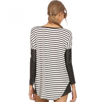 Fashion Contrast Color Stripes Round Neck Long Sleeve T-shirt