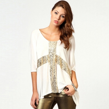 Fashion Cross Shaped Sequins Round Neck Half Sleeve Loose T-shirt