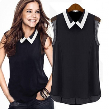 Fashion POLO Collar Sleeveless Chiffon Shirt