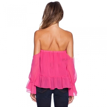 Sexy Slash Neck Off-shoulder Trumpet Sleeve Chiffon Tops