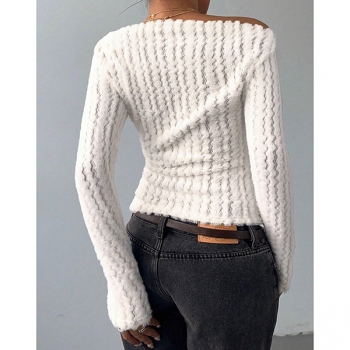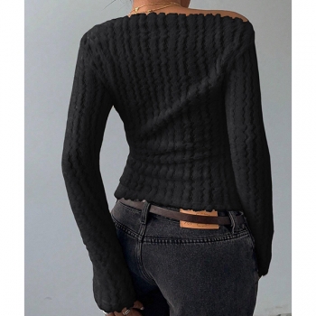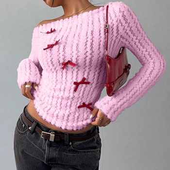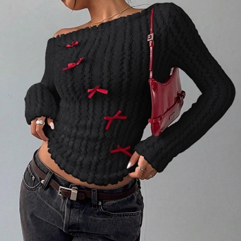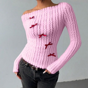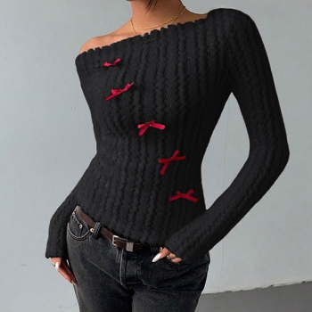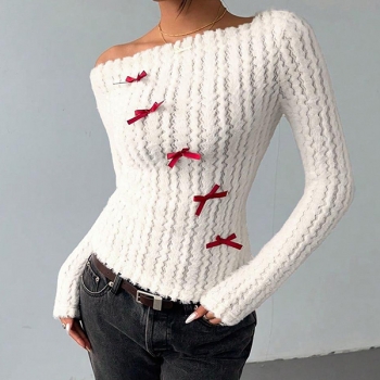 Chic Slant Shoulder Long Sleeve Red Bowknot Sweater
