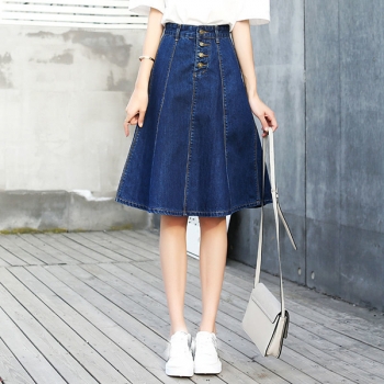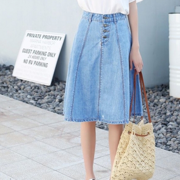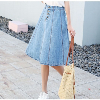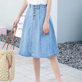 Elegant Buttoned Self-tie High Waist Denim Skirt