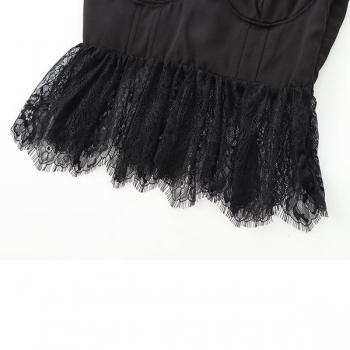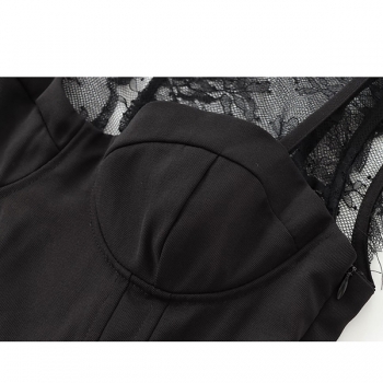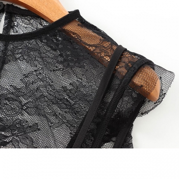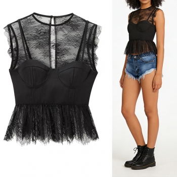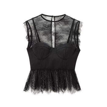 Elegant Lace Spliced Mock Neck Ribbed Shirt