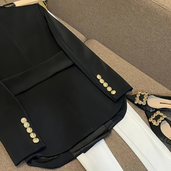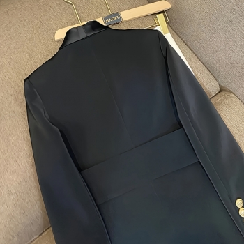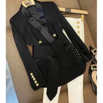 Elegant Lapel Long Sleeve Double-breasted Self-tie Blazer