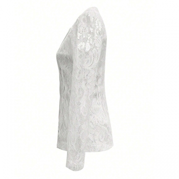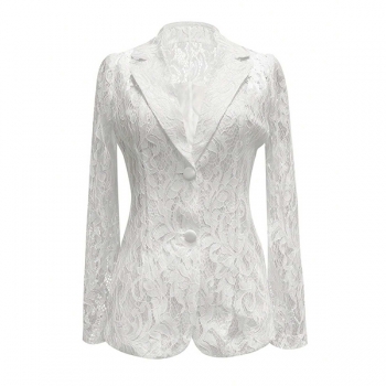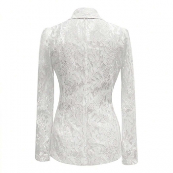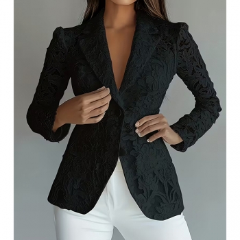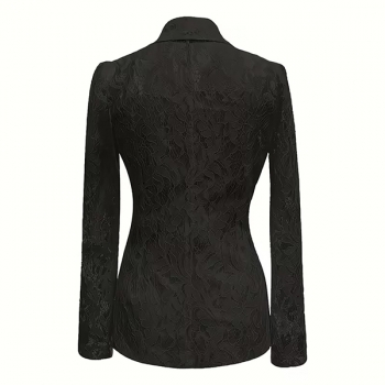 Elegant Notch Lapel Long Sleeve Floral Jacquard Lace Blazer with Lined