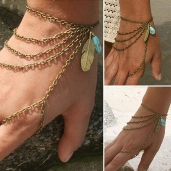 Fashion Leaf Pendant Multi-layer Tassel Bracelet