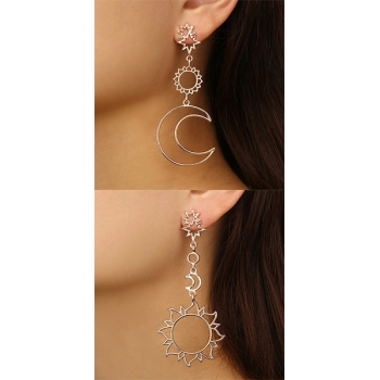 Fashion Hollow Out Crescent/Sun Pendant Asymmetric Earrings