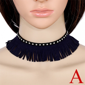 Fashion Ethnic Tassel Bowknot Flocking Choker Necklace