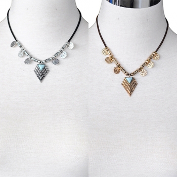 Fashion Ethnic Turiquoise Leather Sweater Necklace