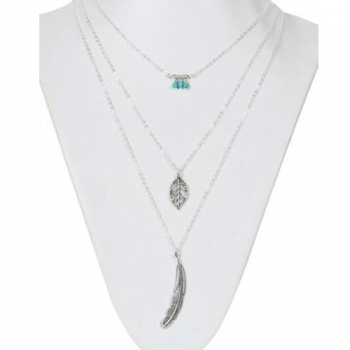Fashion Feather Leaf Pendant Multilayer Necklace