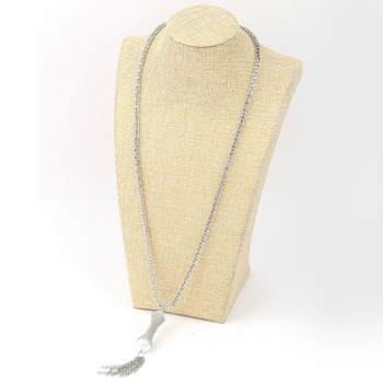 Fashion Lattice Knitting Pearl Tassel Sweater Necklace