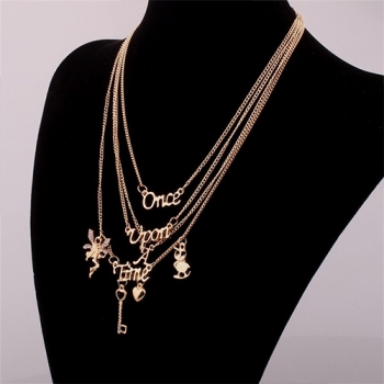 Fashion Owl Key Letters Multilayer Pendant Necklace