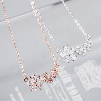 Fashion Rhinestone Inlaid Snowflake Pendant Necklace