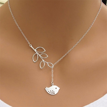 Fashion Silver-tone Bird&Leaf Pendant Necklace