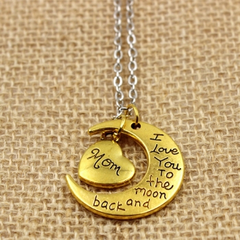 Fashion Style Dad/Mom Carved Moon-Shaped&Heart-Shaped Pendant Necklace