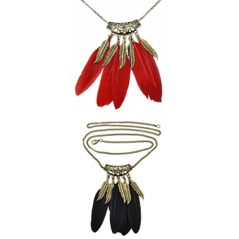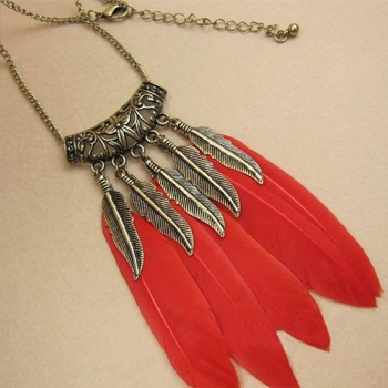 Fashion Tribal-Inspired Pendant With Faux Feather Etched Leaf Fringed Necklace