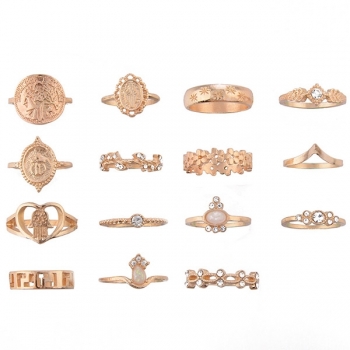Retro Style Rhinestone Inlaid Ring Set 15 pcs/Set