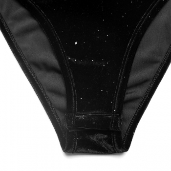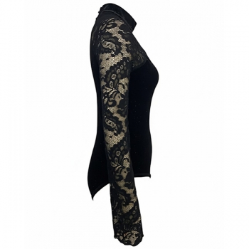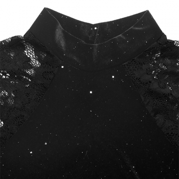 Fashion Bling-bling Mock Neck Lace Spliced Long Sleeve Bodysuit