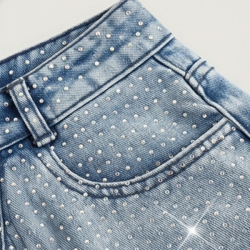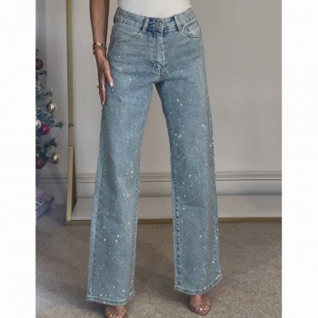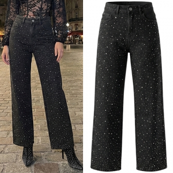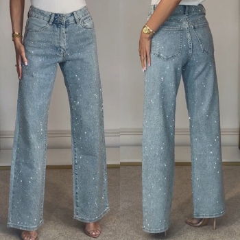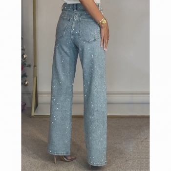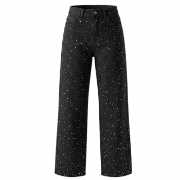 Fashion Bling-bling Rhinestone High-rise Straight-cut Denim Jeans