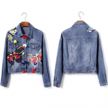 Fashion Butterfly Embroidery Long Sleeve Denim Jacket