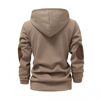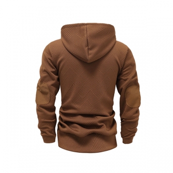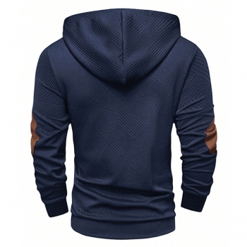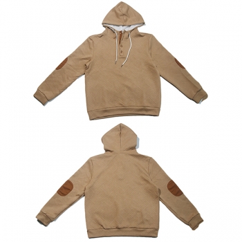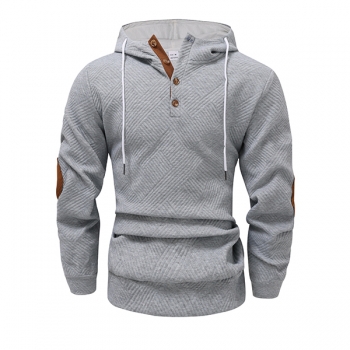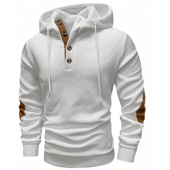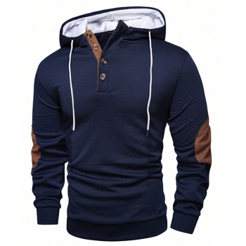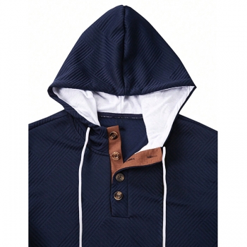 Fashion Button V-neck Drawstring Hooded Long Sleeve Texture Sweatshirt for Men