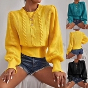 Fashion Cable Knitted Two-piece Set Consist of Sweater and Pants