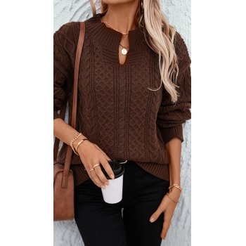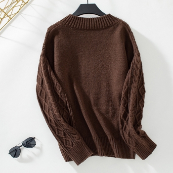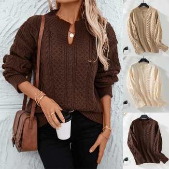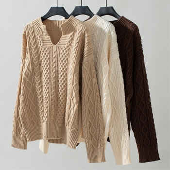 Fashion Cable Pattern V-neck Long Sleeve Sweater