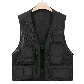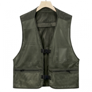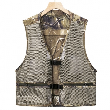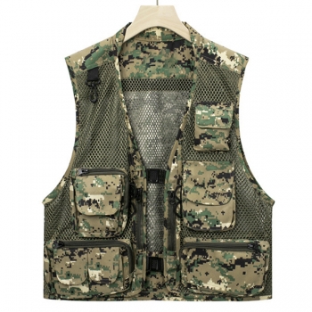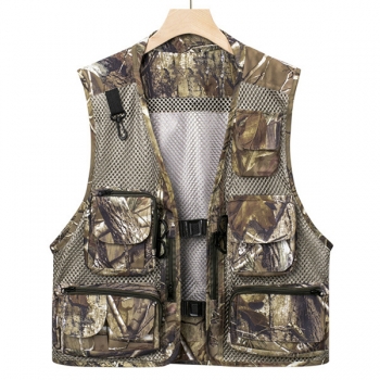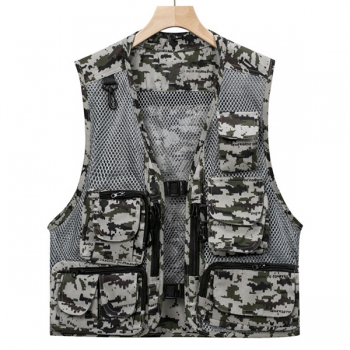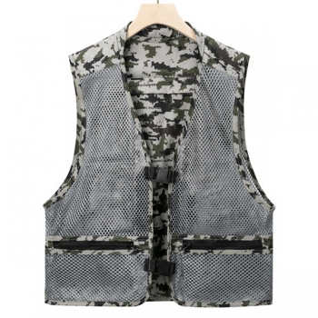 Fashion Camouflage Printed Multi-Pocket Mesh-net Spliced Sleeveless Outdoor Waistcoat