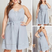 Fashion Contrast Color Bowknot V-neck Slit Pajamas Dress