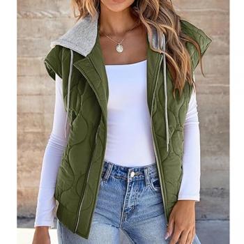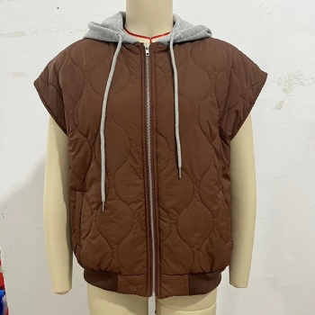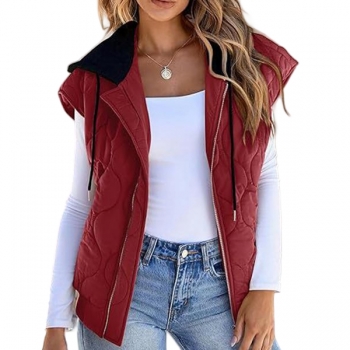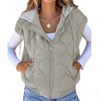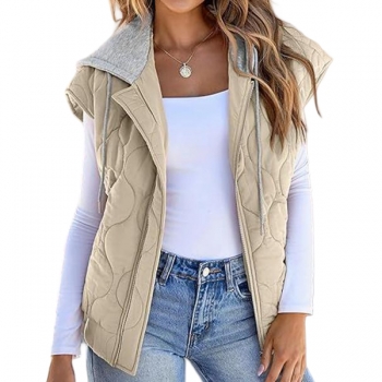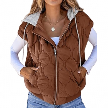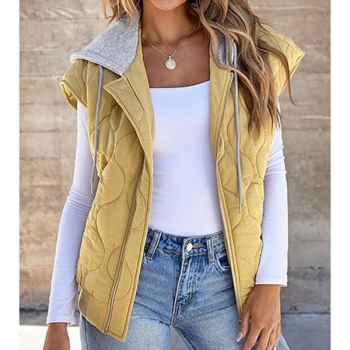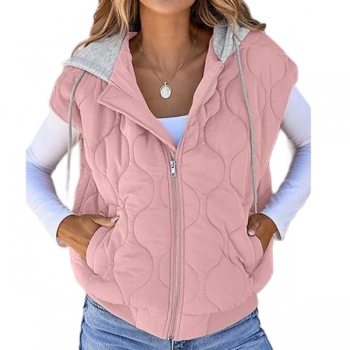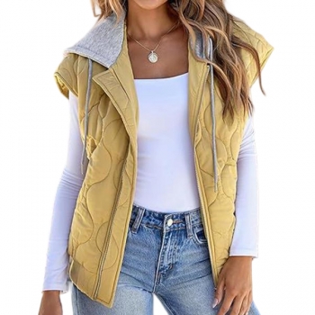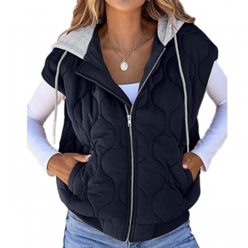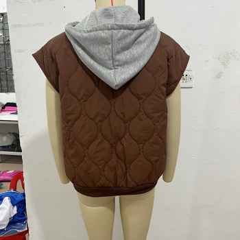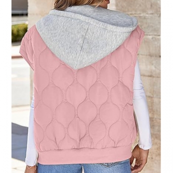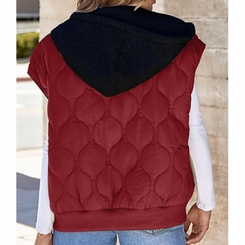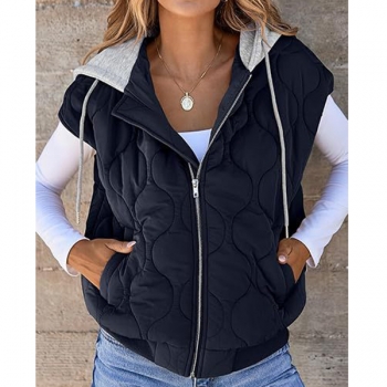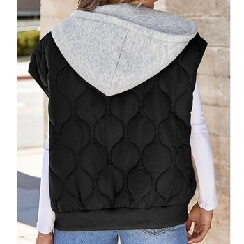 Fashion Contrast Color Detachable Drawstring Hooded Quilted Vest