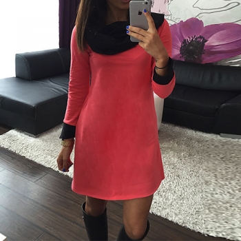 Fashion Contrast Color Long Sleeve Cowl Neck Slim Fit Dress