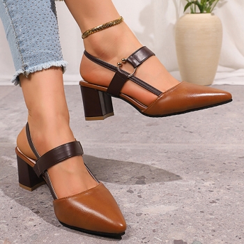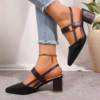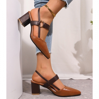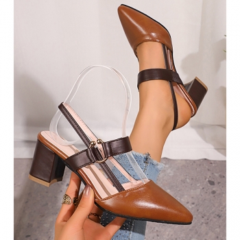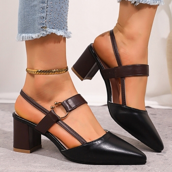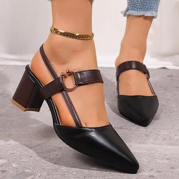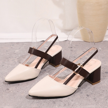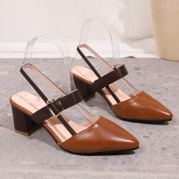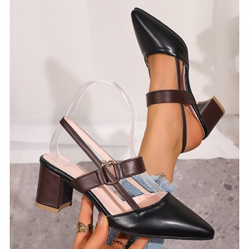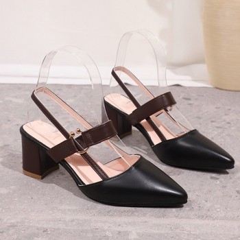 Fashion Contrast Color Pointed-toe Block Heeled Mary-jane Shoes