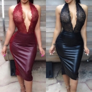 Fashion Contrast Color Polo V-neck Long Sleeve Bodycon Ribbed Dress