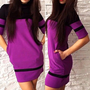 Fashion Contrast Color Short Sleeve Round Neck Dress