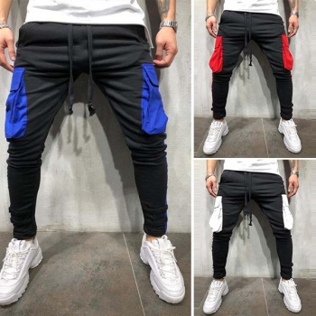 Fashion Contrast Color Side-pocket Men's Casual Pants