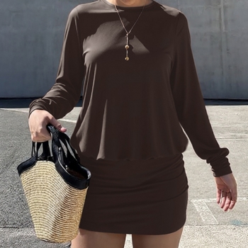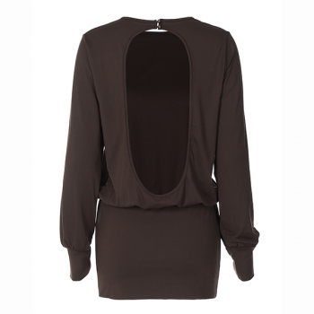 Fashion Crew Neck Long Sleeve Backless Bodycon Dress