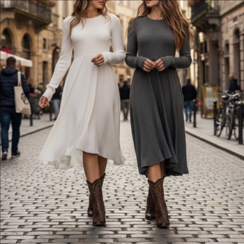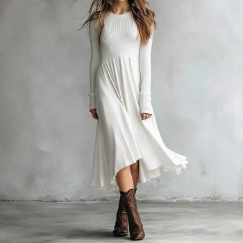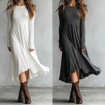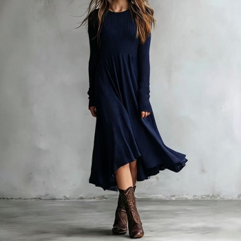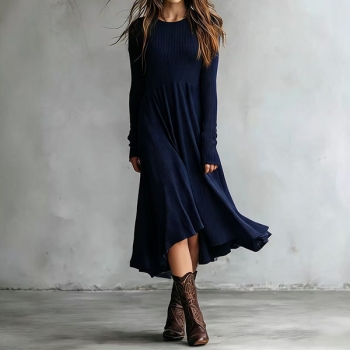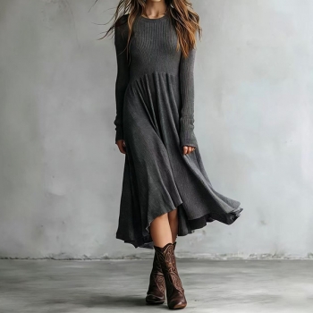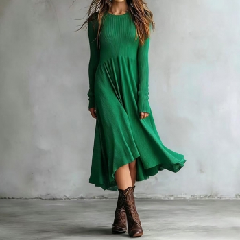 Fashion Crew Neck Long Sleeve High-rise Midi Dress