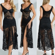 Fashion Cutout Short Sleeve V-neck Irregular Slit Hemline Chain Mini Dress